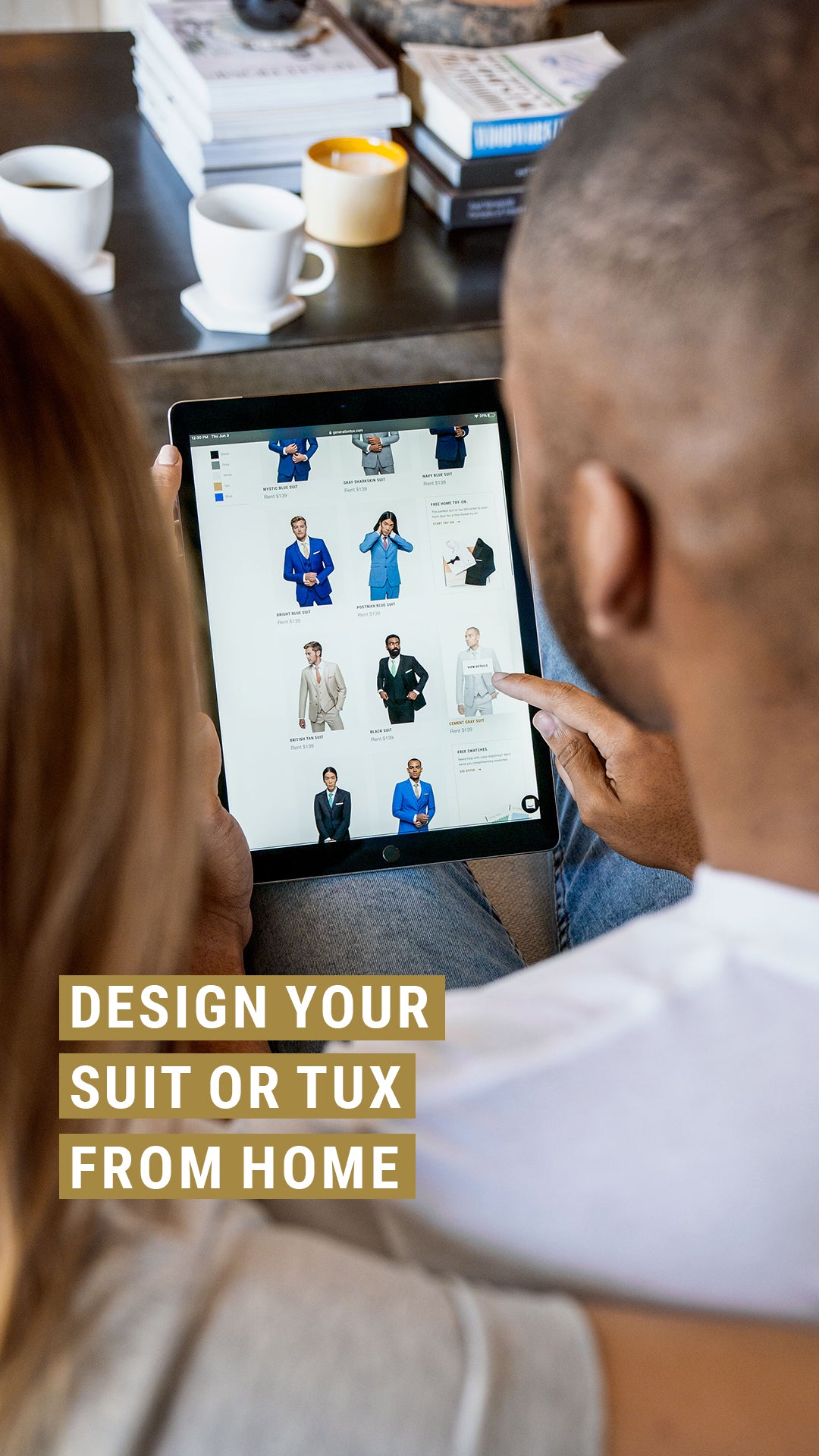 No store visits. No picking up the suit or tux the day before your event. No dropping off the garments the day after. No ill-fitting garments, and best of all, no last-minute stress. Here's how it works: