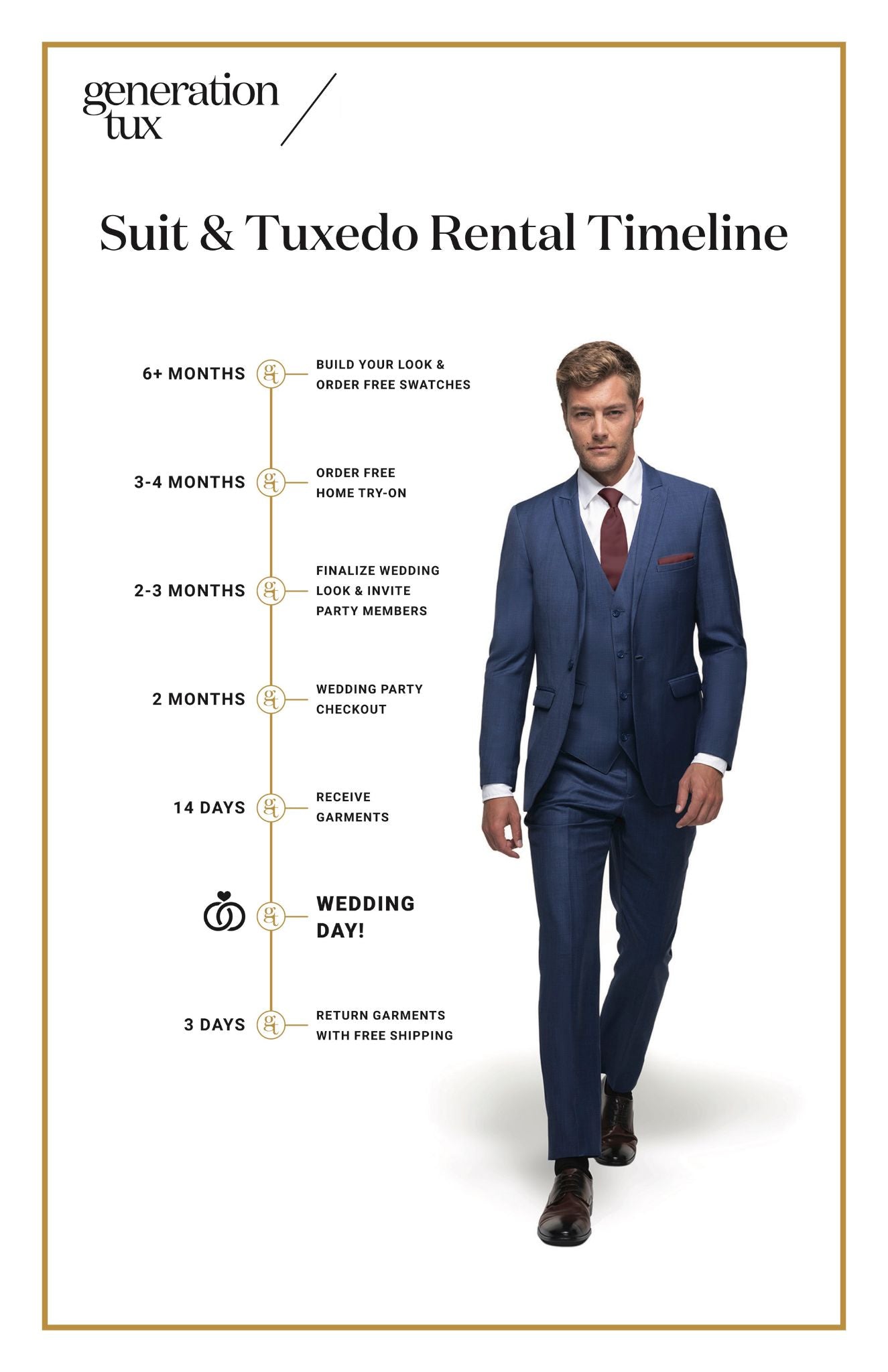 Unlike many suit and tuxedo rental stores--which only allow you to pick up your outfit 24 hours before your event--Generation Tux delivers your suit to your doorstep 14 days before the event date. This early delivery allows for plenty of time to try on your outfit, see what your date thinks, and test out some dance moves in your new threads.