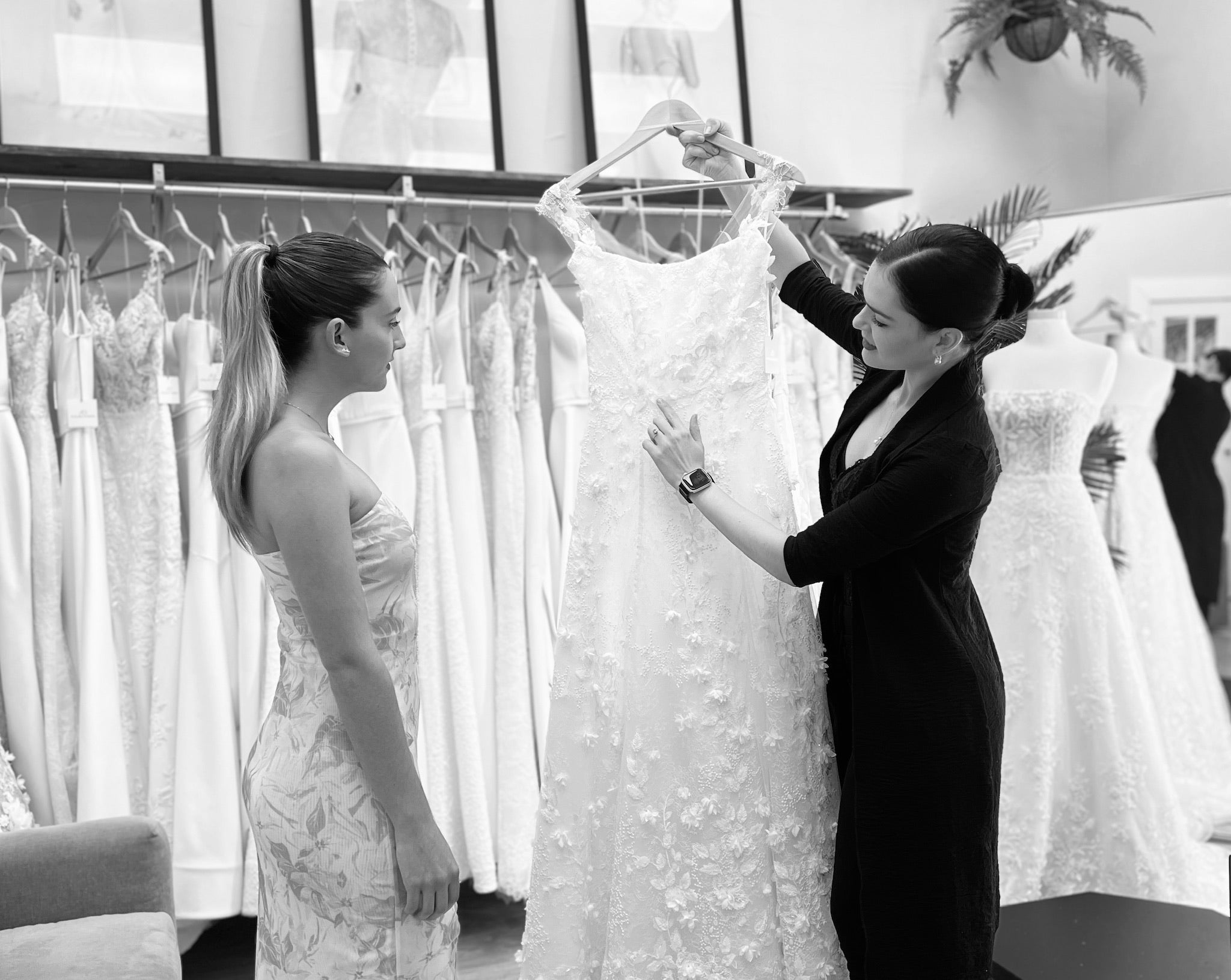 Congratulations on your engagement! We highly recommend scheduling your Bridal Appointment to guarantee the availability of a fitting room and a personal stylist. This will allow you to explore our diverse collections and designers. With the assistance and expertise of our stylists, we are committed to helping you find the ideal silhouette and style that complements you best.