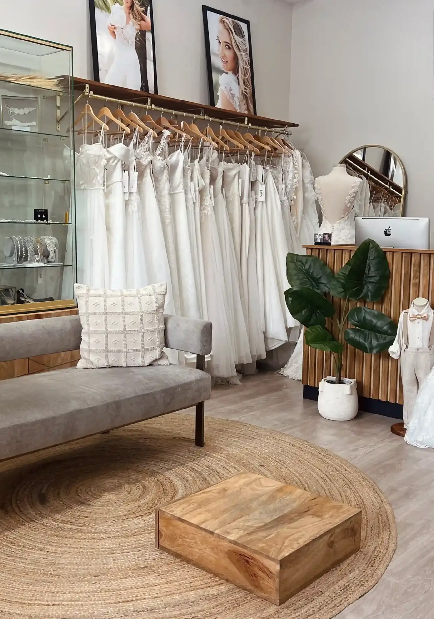 From the moment you walk into our boutique, you will be greeted by your own friendly stylist with a chilled glass of bubbles and sweet treats, before moving into our exclusive Bridal Suite, where you’ll try on our unique and luxurious wedding dresses at your leisure.