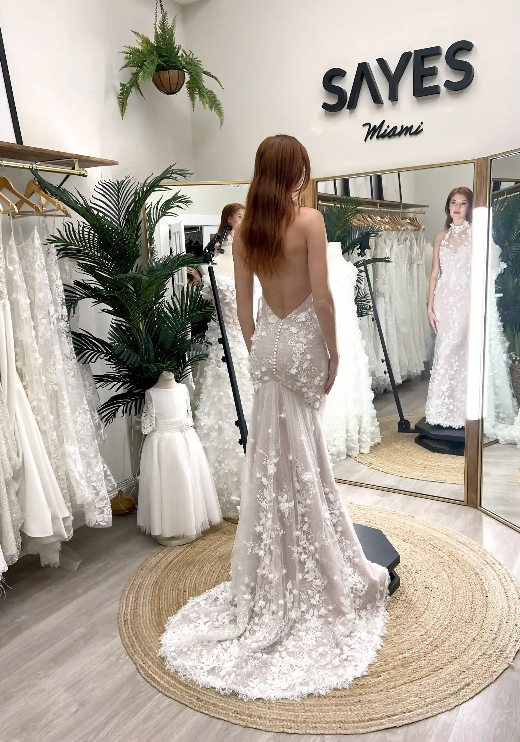 SAYES Miami carries an exclusive line that allows brides to fully customize their wedding gown. Choosing from various silhouettes and necklines to the right fabric and laces.